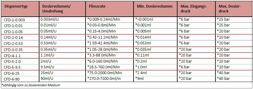 *abhängig vom zu dosierenden Medium und der CFD-Dispensergrösse